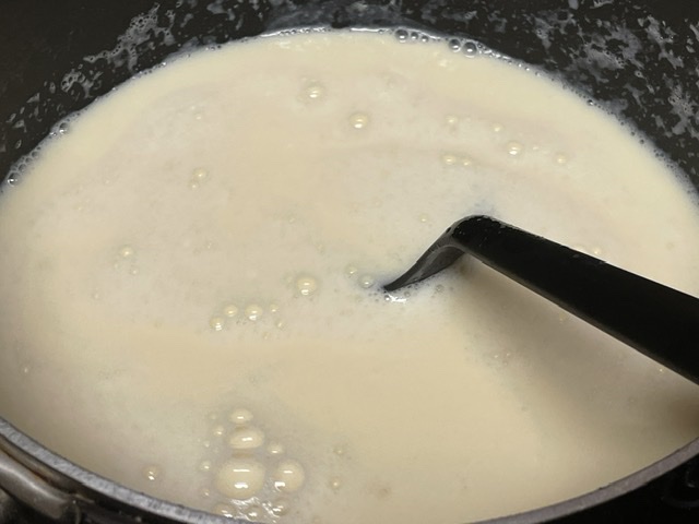 1. Faire chauffer le lait et la vanille dans une casserole.