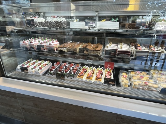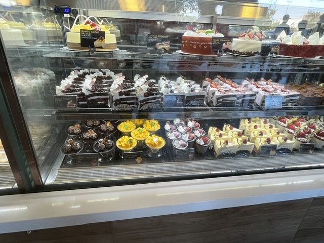 Mais curieusement, la plus grande chaîne de restos philippins, Jolibee, vend des spaghettis aux hot-dogs, et je ne vois pas de rédaction pour expliquer que les italiens ne mangent jamais leurs pâtes de cette façon. Voici les vitrines d’une grande chaîne de pâtisserie taïwanaise, 85°C — il n’y a pas d’explication dans leur boutique ni sur leur site que presque tout est fait avec du soja au lieu de lait, mais c’est pas la bonne recette française :