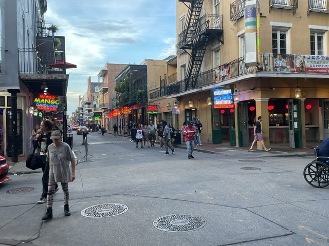 De l’hôtel, on est partis pour le célèbre « Bourbon Street », dit originalement Rue Bourbon. De nos jours, c’est plein de bars et de clubs, et c’est plutôt le Montmartre américain, mais c’est aussi le meilleur endroit pour voir de l’architecture coloniale française.