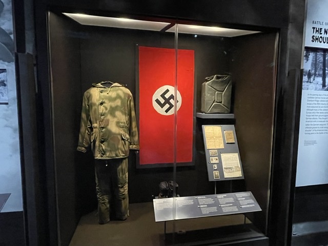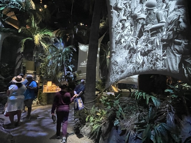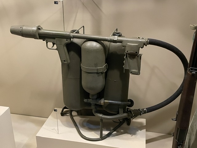 On ne passera que brièvement par l’exposition de la guerre en Asie, pas à cause de ne pas être intéressant, mais parce que sinon ce post sera beaucoup trop long. Il y a une reconstitution de l’environnement que l’on aurait trouvé à Saïpan ou à Guadalcanal. On y trouve aussi un M-2 lance-flammes, l’une des armes les plus horrifiantes de l’époque.