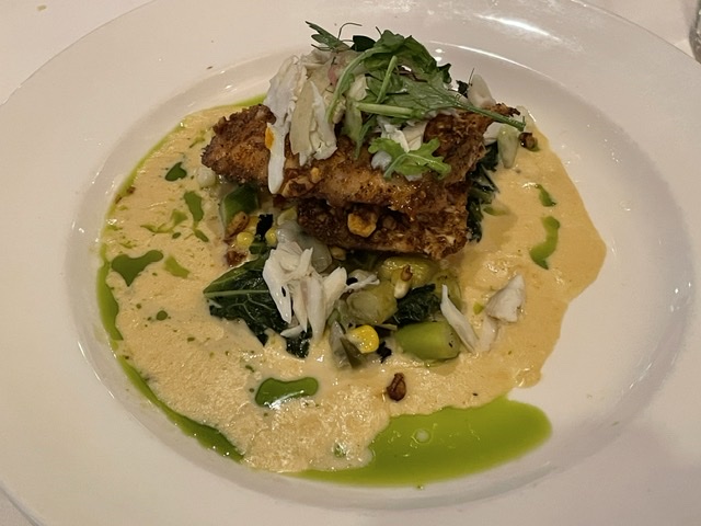 Peut-être les deux techniques les plus importantes dans la cuisine cajun sont les viandes noircies et les croûtes de noix de pécan. J’ai eu le poisson du Golfe à la croûte de noix de pécan, et en dessert, le soufflé au pain perdu avec de la sauce au whiskey. C’est le MUST de la Nouvelle-Orléans.