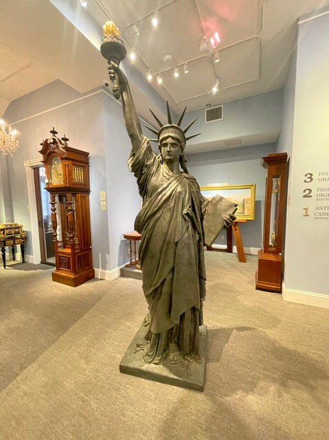 « Mais Justin », vous me dites, « tout ça est bien au-delà de votre remet. Où sont les trucs français ? » Bonne question ! Peut-être que vous avez entendu parler d’un certain sculpteur français, M. Auguste Bartholdi ? Voilà un de 12 exemples de son œuvre le plus célèbre, coulé en bronze de son modèle en plâtre que l’on peut trouver au Musée des arts et métiers à Paris. Si vous avez 1 250 000 $ sous le canapé, c’est à vous ! (Anne-Élisabeth Lemoine non inclus.)
