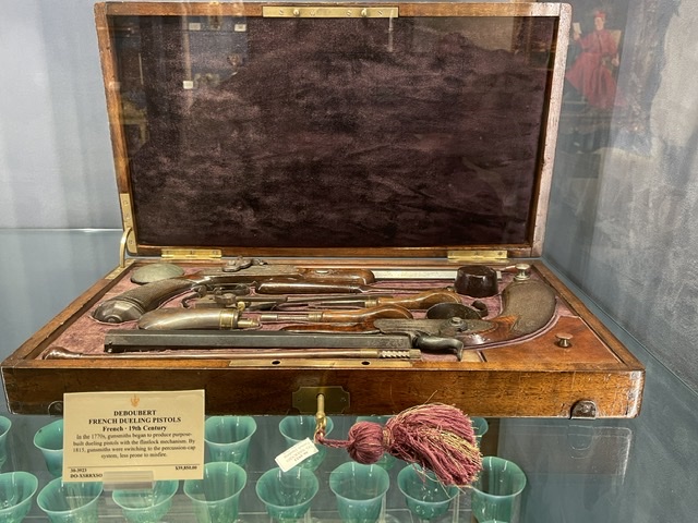 Je ne suis pas un homme violent. Mais si je me fâchais vraiment sur les perles, j’aurais suggéré que l’on règle le différend avec ces jolis pistolets de duel français de 1830 (39 850 $) :