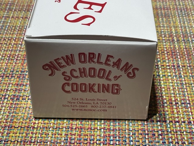 Mais j’ai commencé tout ce parler de la Nouvelle-Orléans avec du parler de pralines. Où sont-elles ? Voilà, les meilleures pralines de la ville, du New Orleans School of Cooking :