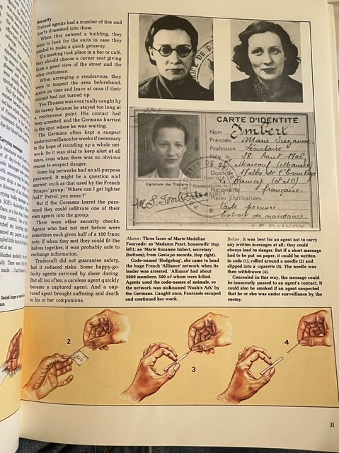 En face, la plus grande héroïne de mon enfance, après Jeanne d’Arc, Marie-Madeleine Fourcade, avec ses nombreux déguisements et fausses identités :