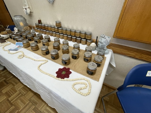 Finalement, il y avait une vendeuse de bougies fait maison. Je me demande si vous reconnaissez l’objet dans lequel les grandes bougies restent debout. Ne me dites pas que c’est un bloc de bois. Évidemment, mais pas seulement.