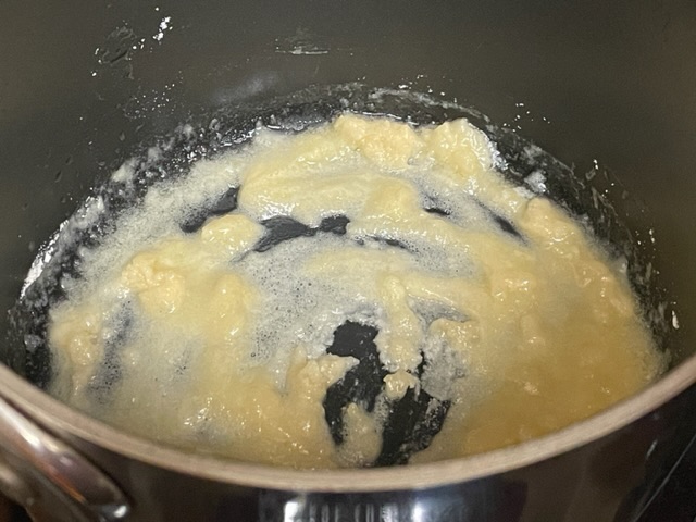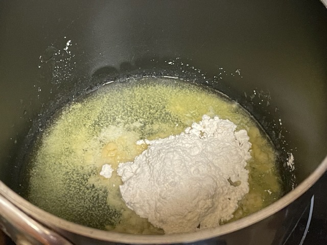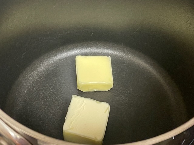 - Faire fondre le beurre dans une casserole sur un feu moyen.
