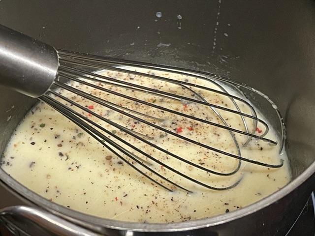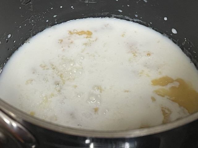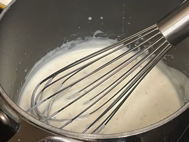 - Verser le lait dans la casserole. Sans la faire bouillir, on veut atteindre une sauce épaisse.