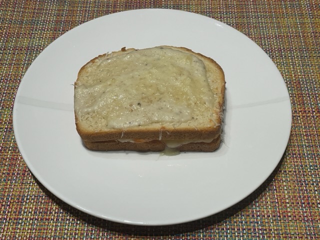 Je vous donnerai la recette pour 4 sandwiches, bien que je n’aie préparé qu’un, parce que j’ai pas coupé la recette pour la sauce béchamel. Une fois fait, on peut garder le reste de la sauce au frigo pour le lendemain.