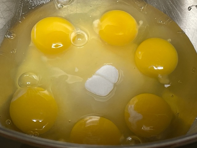 1. Dans le bol d’un robot, déposer les œufs, et ajouter le sucre en poudre. Avec le fouet, battre pendant 5 minutes à vitesse moyenne.