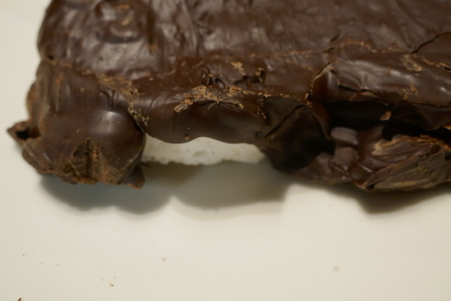 Ça a l’air un peu plus maison que j’aimerais, mais pas mal. Pas mal du tout. Et oui, c’est du chocolat noir, pas au lait. Chez Ghirardelli, le chocolat noir est la star. Allons faire des bonbons.
