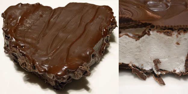 Je ne sais pas pourquoi je fais des recettes pour fêter la Saint-Valentin. Mais ma fille adore les macarons d’il y a deux ans, alors je suppose que c’est une raison. De toute façon, l’un de nos bonbons préférés est les « Marshmallow Hearts » de See’s Candies, le chocolatier californien. Ce sont des guimauves en forme de cœur, recouvertes avec du chocolat au lait. Mais l’inflation a bien frappé See’s, et un chocolat de 18 $/454 grammes en 2019 coûte maintenant 30 $. Le rapport qualité prix n’étant plus ce qu’il était, voyons ce que l’on peut faire à la maison :
