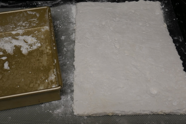 1. Verser la pâte à guimauves dans le plat creux. Étaler avec une spatule graissée d’un peu d’huile. Saupoudrer la pâte avec plus du mélange sucre glace/maïzena. Étaler la poudre avec le dos d’une petite cuillère. Laisser reposer au moins 4 heures, mais de préférence toute la nuit — mes guimauves ont reposé 24 heures, mais à mon avis, elles étaient prêtes après 8 heures.