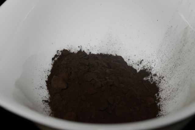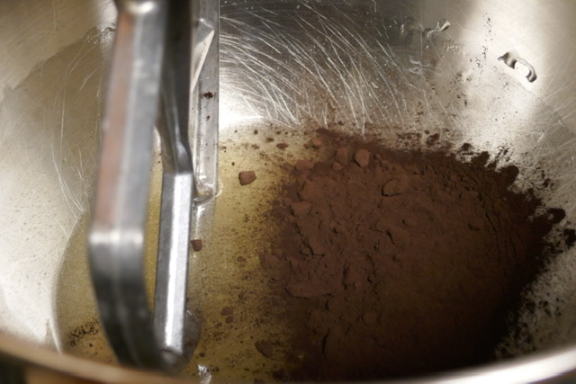 J’ai utilisé une poudre de cacao très amer pour sa couleur, alors pour couper l’amertume, j’ai ajouté un peu de sucre à ma chantilly.