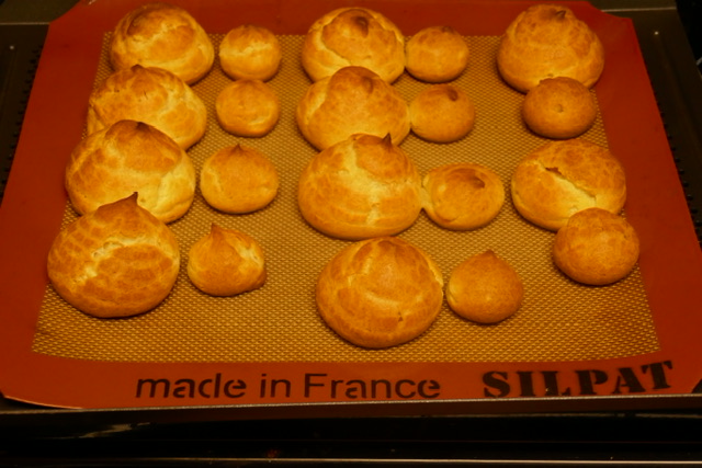 - Faire cuire pendant 10 minutes, puis baisser la température à 180°C. Sortir les choux après 20 minutes (30 total).