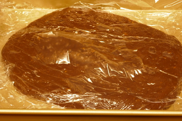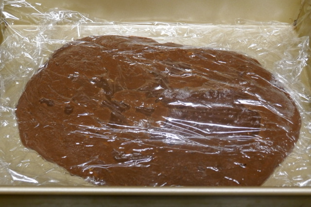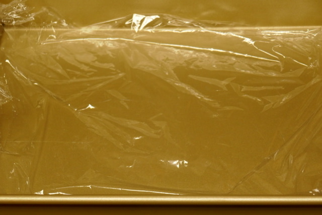 - Mette du film à contact sur une plaque et y étaler la crème. Couvrir avec plus de film à contact afin qu’une croûte ne forme pas. Laisser reposer au frigo pendant une heure.