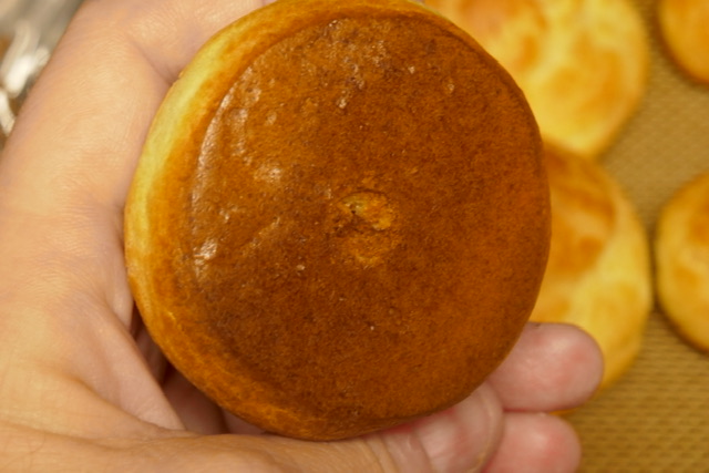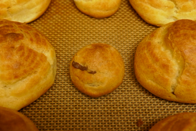 - Remplir jusqu’à ce que vous puissiez vous sentir la pression de la crème. Attention à ne pas trop remplir les choux ; sinon, ils craqueront comme ici :