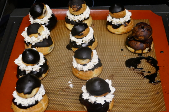 J’ai laissé mes religieuses reposer au frigo pendant 20 minutes avant de les servir, pour assurer que la chantilly était assez ferme.