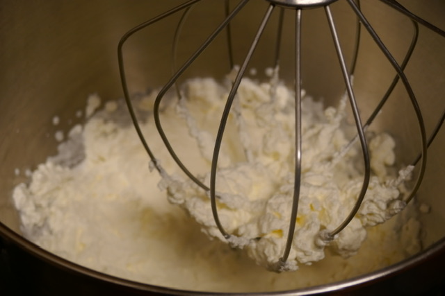 - Quand c’est l’heure d’utiliser la crème, la mettre dans un saladier et la battre avec soit une fourchette soit un fouet.