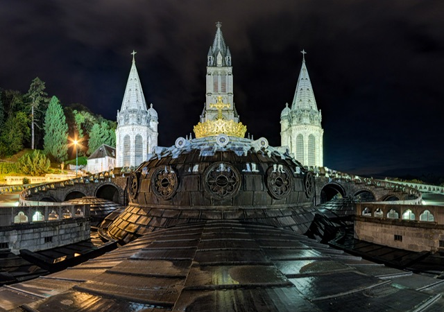 De Tarbes, on passe à Lourdes. Mon renseignement préféré de toute la France vient de cette ville. Elle a 144 hôtels avec 22 000 lits — mais il n’y a que 13 000 habitants ! Naturellement, il y a une excellente raison pour cette quantité de tourisme — c’est le site d’une série d’apparitions de la Sainte-Vierge jugées véritables par la Sainte-Église (pas toujours le cas). En résultat, il y a de nombreux pèlerinages pour voir la Grotte de Massabielle, où les apparitions ont eu lieu. En haut de la Grotte, on trouve la Basilique du Rosaire et basilique de l’Immaculée Conception, construit au XIXe siècle à l’honneur des apparitions. Il me semble que le Guide Michelin se trompe gravement en ne donnant pas d’étoiles à ces sites ; je suis allé à des sites musulmans à Istanbul et Jérusalem, juifs à Jérusalem et Venise, et catholiques partout, dont le Vatican. Évidemment, impossible de croire à tous en même temps, mais reconnaître leur pouvoir, c’est bien possible. De toute façon, si j’y priais la Sainte-Vierge, je suis sûr qu’elle me dirait qu’elle ne fait que des miracles, et le Seigneur n’a toujours pas inventé le bon mot pour ce dont j’ai besoin.