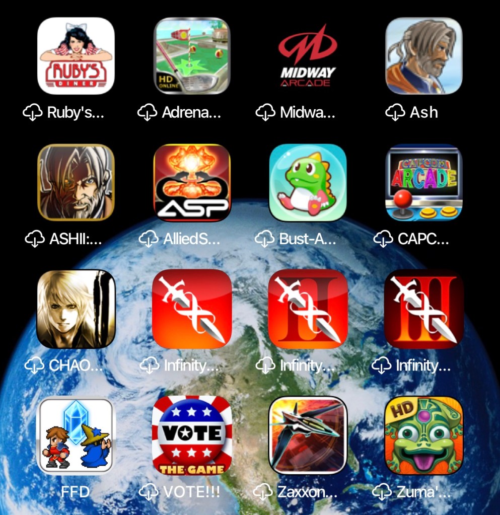 Pour une chose, elles étaient toutes payantes. Il y a quelque chose de dérangeant quand une appli ne marche plus après que je l’ai payée, même si je sais qu’il y a plus de revenus pour le développeur. Par exemple, « Adrenaline Golf » en haut était quelque chose de nouveau et intéressant… en 2009. C’est abandonné depuis une décennie. Mais c’était aussi l’une des premières applis que j’ai achetées, alors j’ai du mal à lui dire adieu.