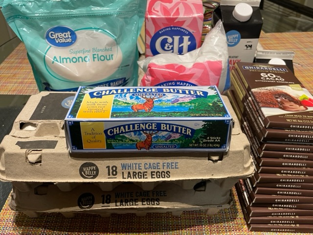 Il faut que j’achète une nouvelle boîte de poudre de cacao, et j’ai dû aussi ajouter 4 œufs de plus pour atteindre 40 (il y a 18 dans chacune des boîtes). Mais tout dans cette photo coûte environ 95 $. Disons qu’avec les autres ingrédients, ça coûterait 115 $ (la poudre de cacao Guittard est chère, mais il me restera plein). Aussi, ce chocolat Ghirardelli est bon, mais si j’allais ouvrir une boutique, j’utiliserais Valrhona. C’est 113 grammes x 15 barres, alors environ 1,7 kg. Ça m’a coûté 48 $ de mon 95 $. Disons que 1,7 kg de Valrhona Manjari coûte 70 $ chez Surfas. Alors, tout ça coûterait au maximum 140 $ pour les ingrédients de 400 macarons.