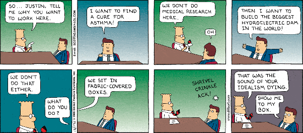 Au fait, je suis apparu dans Dilbert tout au début de ma carrière, après l’université. Ne me croyez jamais sur parole, voici la preuve :