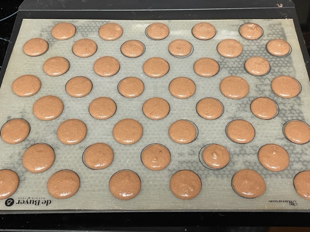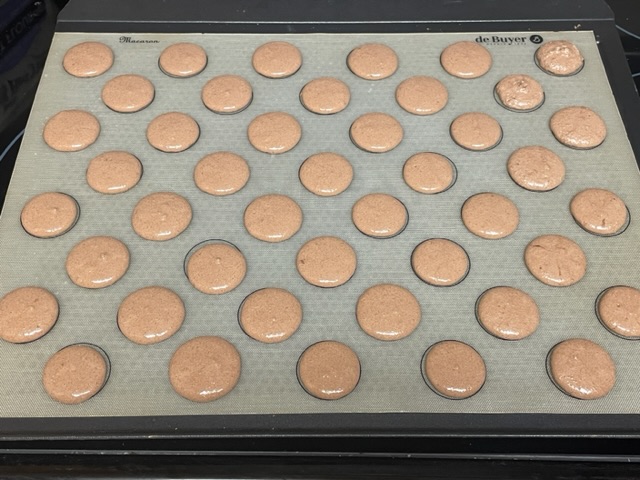 Mais j’ai du temps pour tout corriger, et ces macarons n’ont pas mon secret le plus « Pierre Hermé » — les blancs déjà cassés qui reposent pendant plusieurs jours au frigo. J’ai cassé ces œufs au moment de préparer les macarons — Chef Hermé a raison, et les protéines doivent se décomposer un peu. Mes macarons pour l’OCA ont reçu ce traitement, et c’est pourquoi il y a 1,2 kg de blancs dans mon frigo en ce moment, 40 œufs en total ;