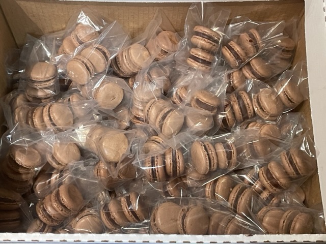 De toute façon, j’ai raté mon but de produire 400 macarons et fini avec 300. Je n’aurais jamais osé imaginer ce qui arriverait. Mais d’abord, quelques vues des résultats.