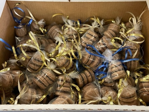 Mais j’ai fini par produire une boîte pleine de 150 petits sacs, avec 2 macarons dans chacun :