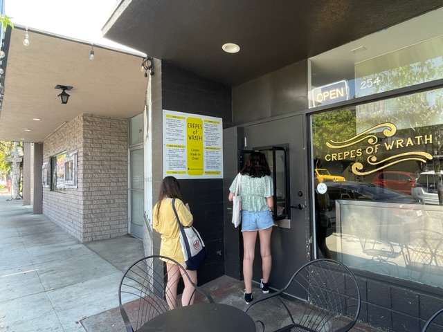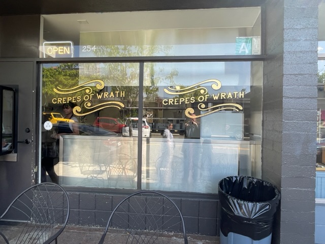 Il y avait quelque chose de nouveau et très français à cette visite — une crêperie ! Dit « Crêpes of Wrath », un calembour sur le livre américain « The Grapes of Wrath » par John Steinbeck, traduit en français sous le nom Les Raisins de la colère. « Les Crêpes de la colère » n’aurait aucun sens aux anglophones :