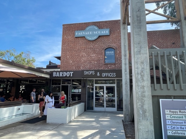 À côté de la crêperie, on trouve le bâtiment dit « Harvard Square » (dans la rue dit « Harvard » — toutes les rues à Claremont ont les noms de célèbres universités ailleurs). C’était là, dans l’ancien Harvard Square Café où j’ai découvert la tarte Tatin pour la première fois. Le café nous a quitté il y a une décennie. Il y a un nouveau resto dans son éspace, dit Bardot. Je n’ai pas eu le temps pour y manger, mais je suis CURIEUX.
