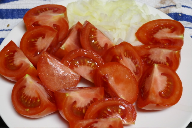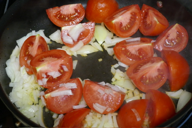 - 4 tomates, coupées en quarts