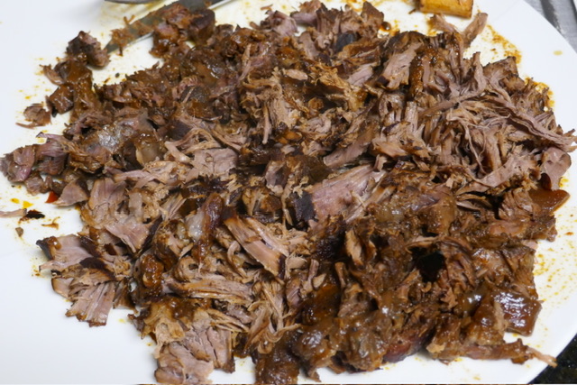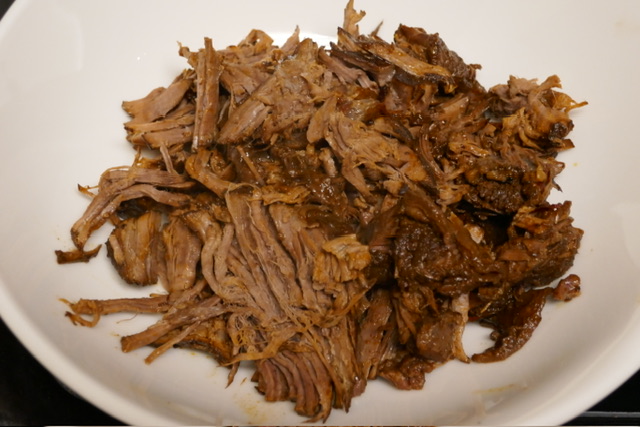 - À la fin de 3 heures, retirer la viande. Râper le tout avec une fourchette et un couteau.