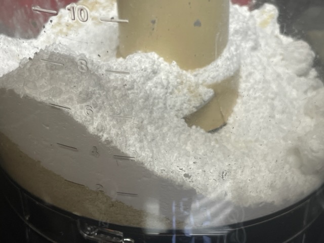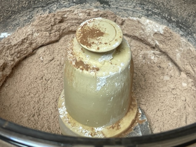 1. Mettre le sucre glace, la poudre d’amande, et la poudre de cacao dans le bol un robot culinaire. Bien mélanger avec la lame — c’est beaucoup plus efficace que tout tamiser !