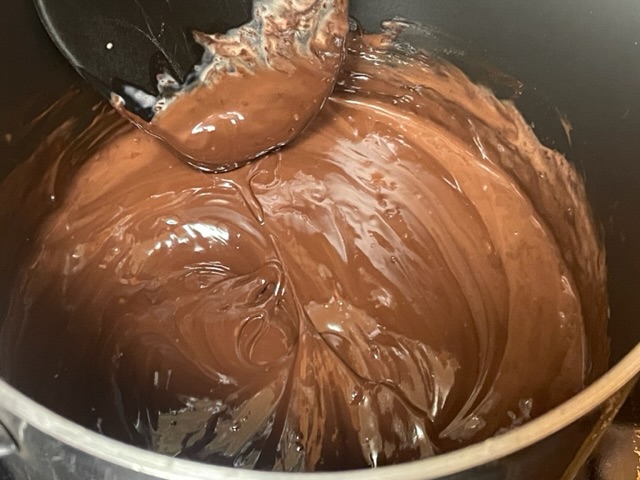 1. Remuer souvent. Dès que le chocolat est à moitié fondu, on peu éteindre le feu. Continuer à remuer jusqu’à ce que le chocolat soit tout fondu.