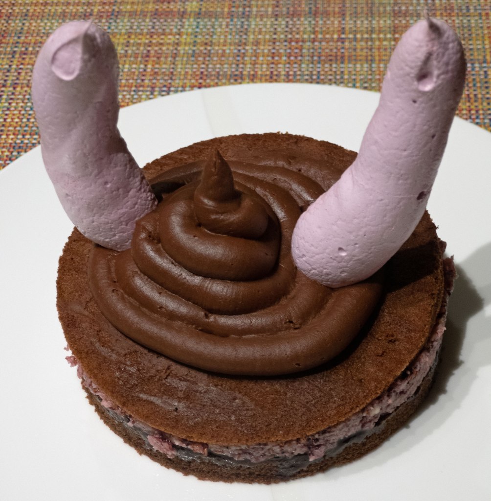 Je vous dirai franchement que je l’ai fait selon la meilleure de mes compétences, mais je sais que je ne suis pas bon en décoration. Sinon, le choix de recettes est très bon, et la combinaison marche parfaitement. Si je l’ai fait en tant que gâteau ordinaire, sans essayer de copier le dessin d’un jeu vidéo, ce serait réussite totale. Je dis ça sincèrement.