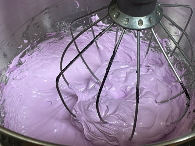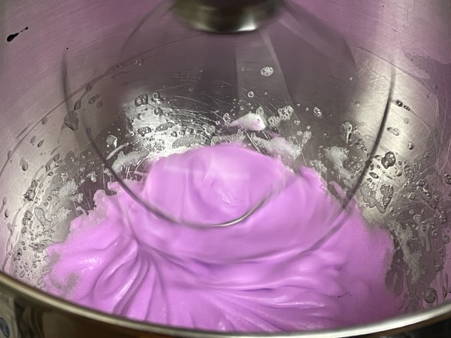 1. Quand les blancs commencent à prendre forme, ajouter le gel colorant.