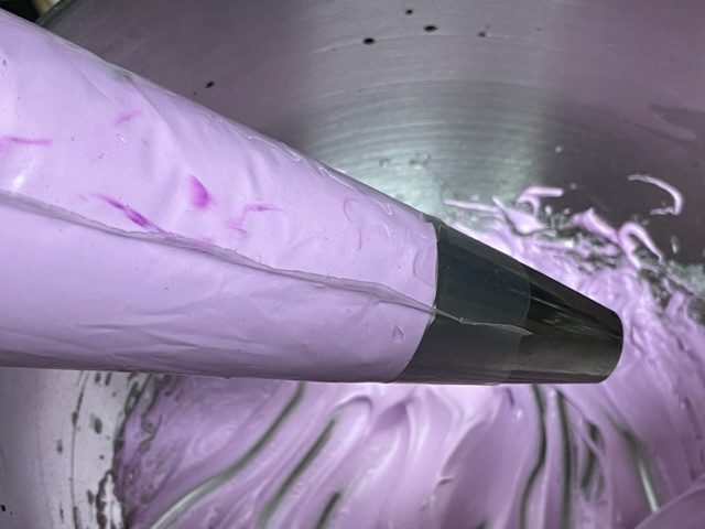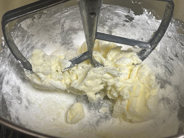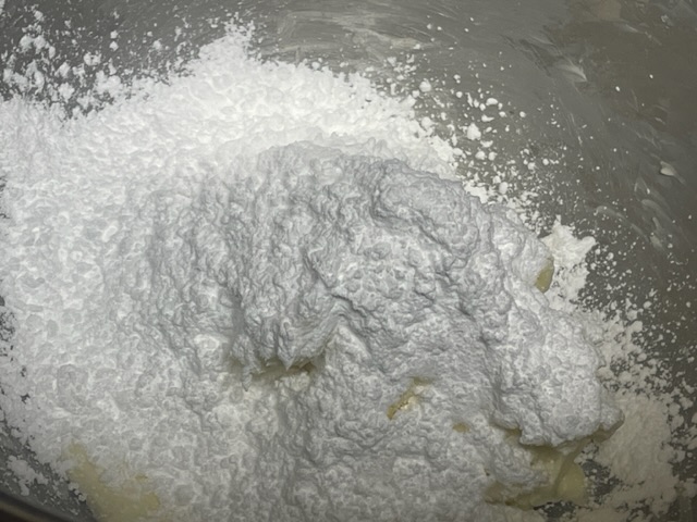 1. Si la crème est trop lisse (je le doute), ajouter plus de sucre glace, 30 grammes à la fois, et mélanger plus. Si la crème est trop épaisse, ajouter 1 cuillère à soupe de crème liquide et mélanger plus. J’ai fini par ajouter 2,5 cuillères à soupe de crème liquide.