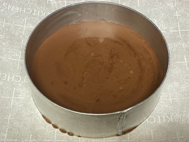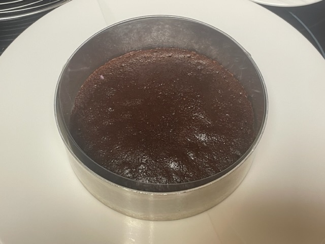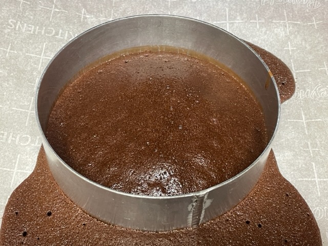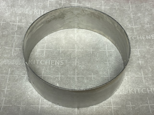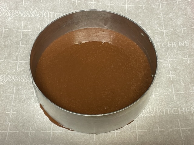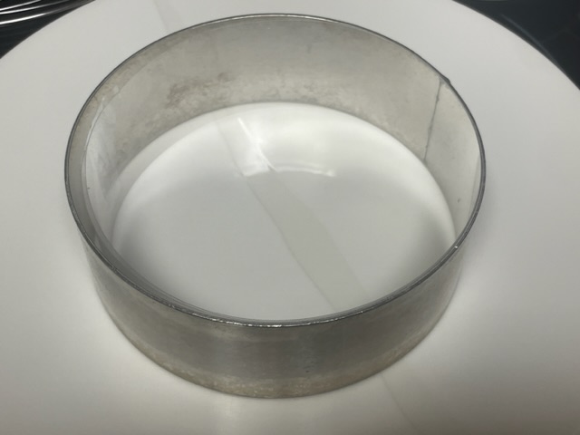 2. Sur une assiette, mettre du Rhodoïd dans le cercle de pâtisserie.