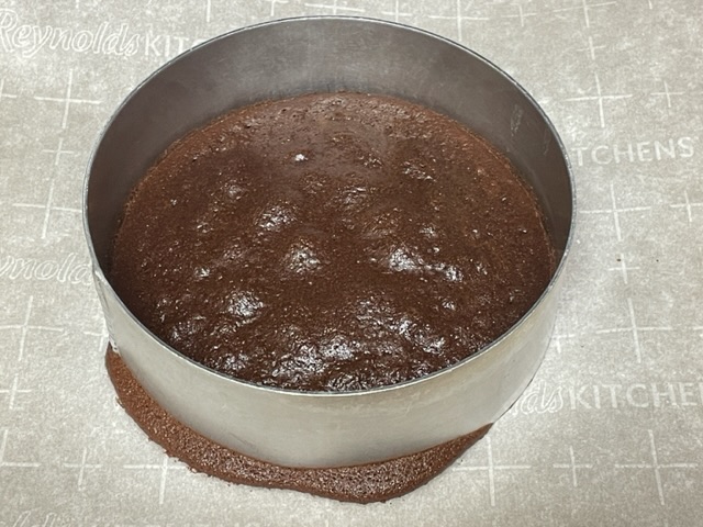 1. Mettre du parchemin au-dessus d’un tapis en silicone et une plaque de cuisson. Beurrer le parchemin et un cercle de pâtisserie de 15 cm. Y mettre la moitié de la pâte. Enfourner pendant 20-22 minutes, et vérifier avec un cure-dent avant de sortir le gâteau.