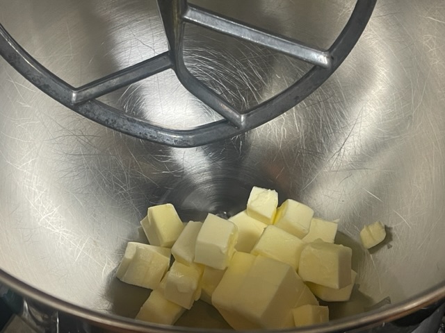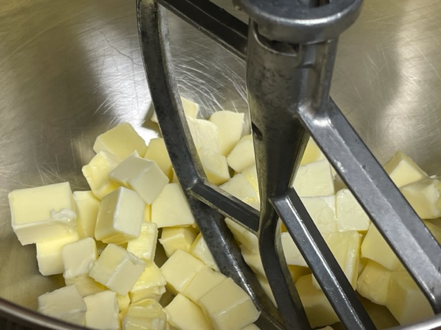 1. Dans le bol d’un robot, battre le beurre à vitesse moyenne jusqu’à ce qu’il devienne crémeux.