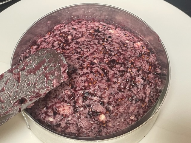 1. Avec une spatule, étaler le crème au beurre aux mûres sur la couche.