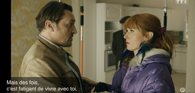 En même temps, elle et son mari hébergeaient chez Gilles, un collègue, à cause de problèmes chez eux, quand il doit les expulser à cause de l’enquête. Son mari n’est pas content d’elle :