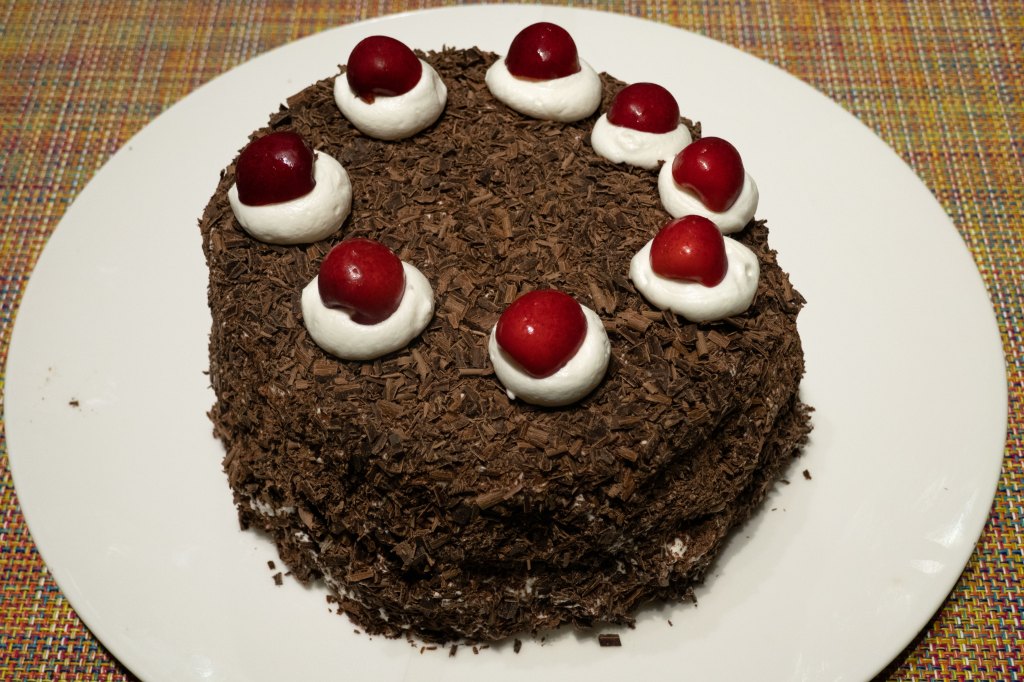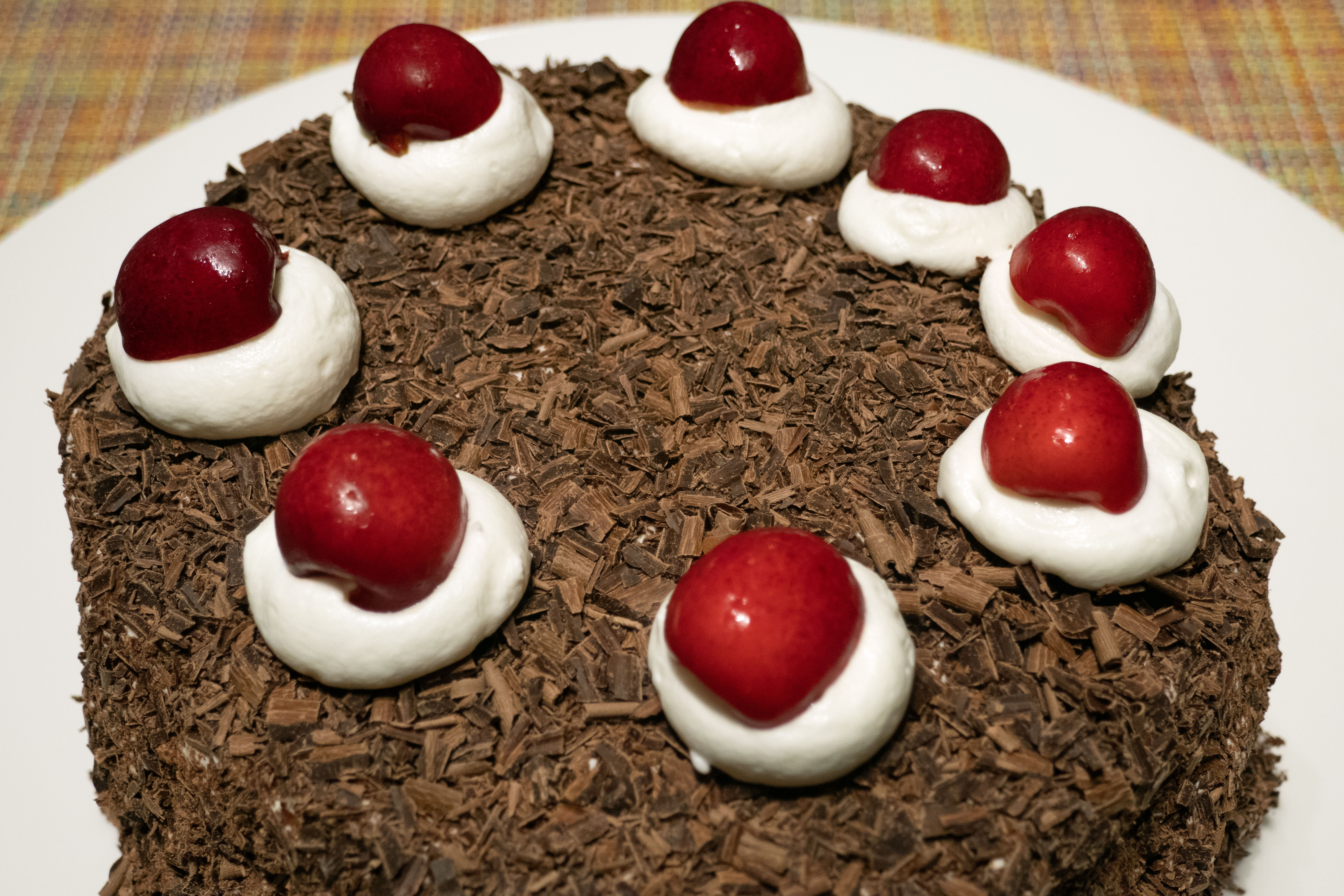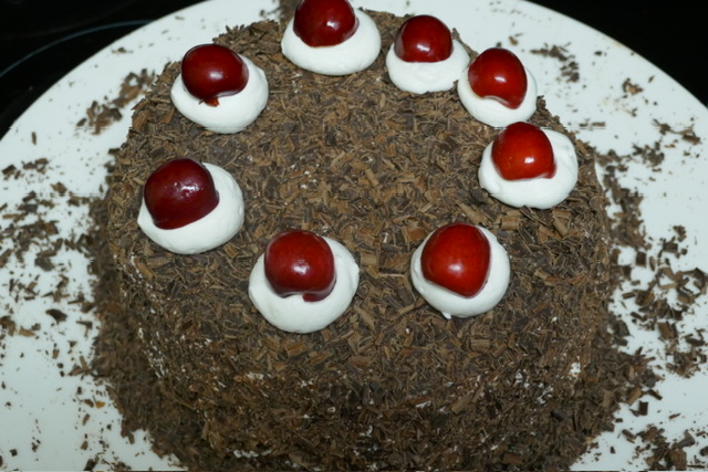 Oh bravo Justin ! Très réussie cette forêt noire. Je crois qu’il y a un peu de kirsch (eau-de-vie de cerise ) dans le sirop. Mais j’aurai bien aimé goûter ton gâteau moi aussi !