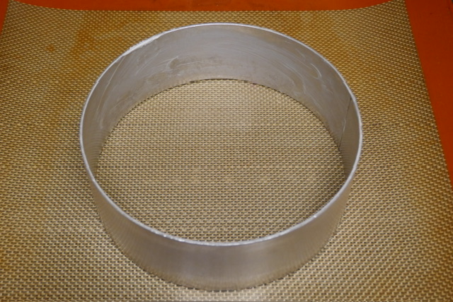 1. Beurrer un cercle de pâtisserie de 15 cm. Le poser sur un tapis en silicone en haut d’une plaque perforée.