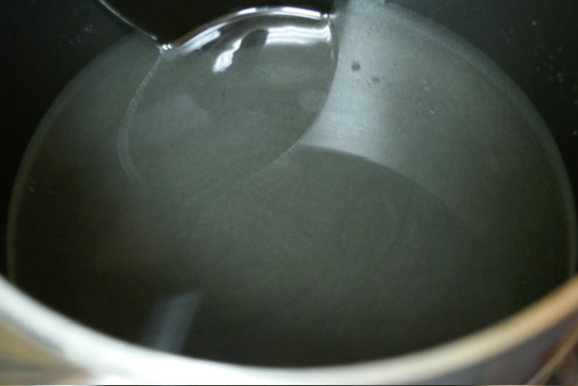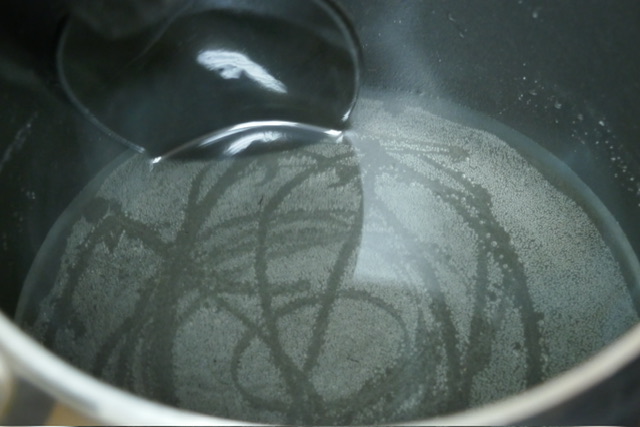 1. Mettre le sucre et l’eau dans une casserole. Faire dissoudre le sucre sur un feu moyen, puis hausser le feu et remuer parfois en portant le tout à ébullition.