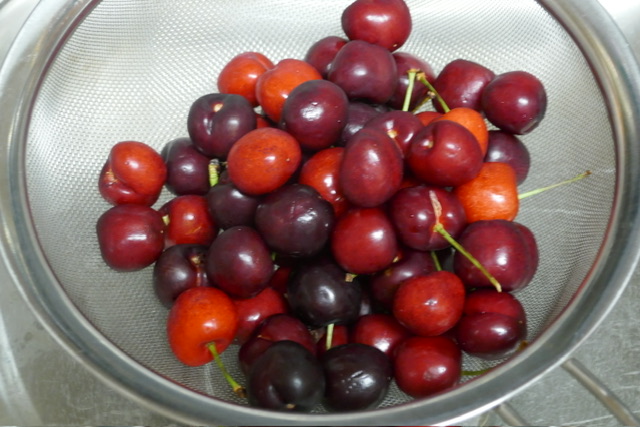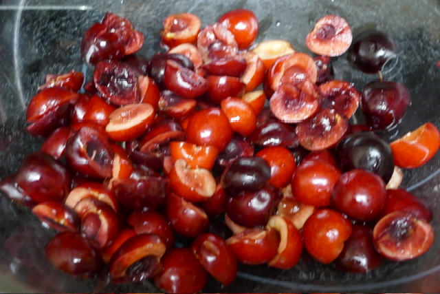 • Une trentaine de cerises, coupées en deux et dénoyautées