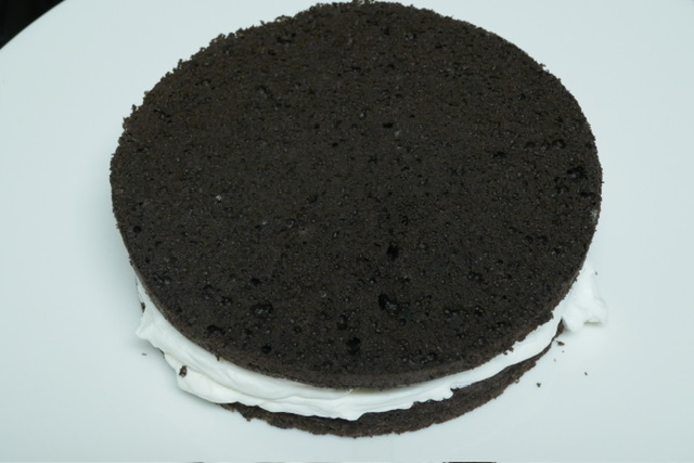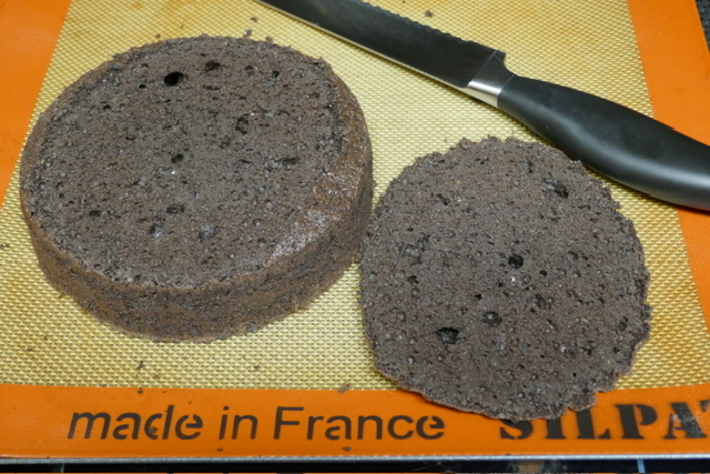 1. D’abord, vous avez presque certainement un renflement au milieu de votre génoise. Le retirer avec un couteau.