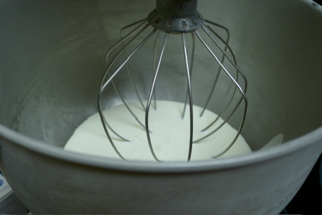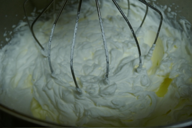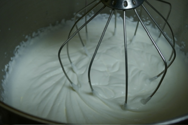 1. Fouetter à grande vitesse jusqu’à ce que la chantilly commence à retenir sa forme. Puis ajouter le sucre glace et continuer à fouetter pendant 1 minute. On ne veut pas que la chantilly devienne trop ferme.